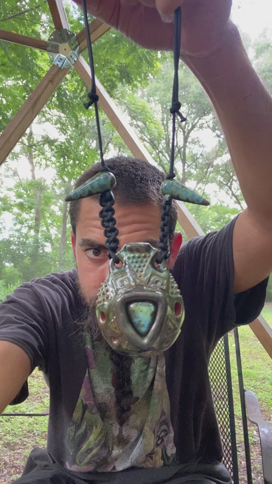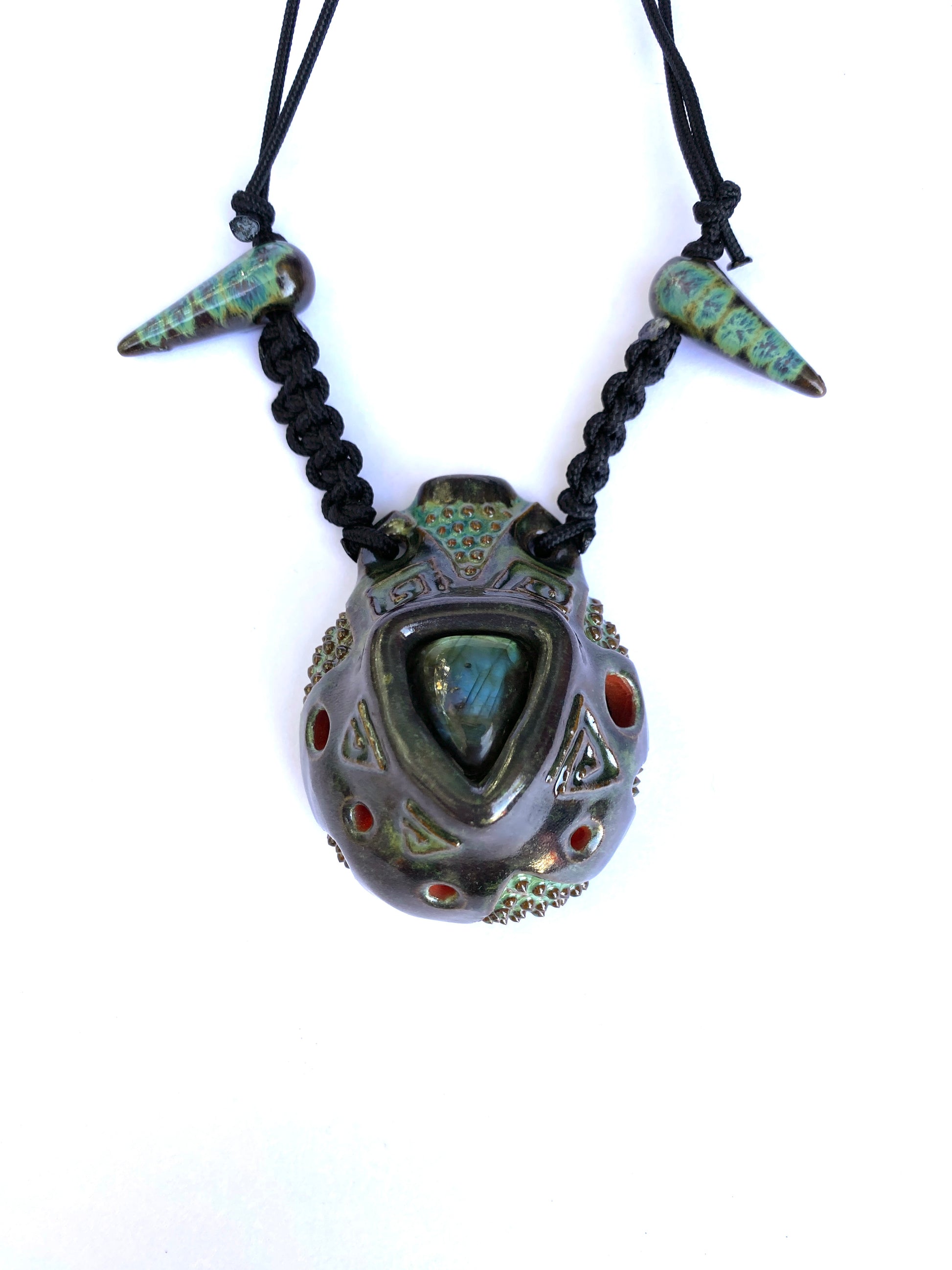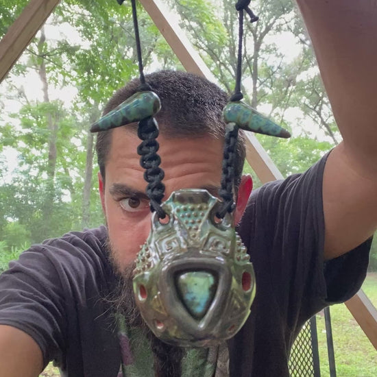 Expertly crafted from red earthenware clay, the Akebono Ocarina is a one-of-a-kind instrument with a beautiful design and labradorite inlay. Tuned to the Akebono scale in the key of E, it offers precise and harmonious sound, perfect for musicians and collectors alike.