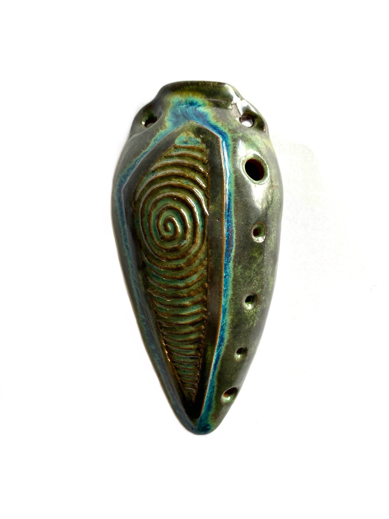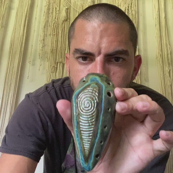 Expertly crafted with earthenware clay, this Egyptian Style Drone ocarina boasts a two chamber design for resonant sound. Tuned to a modified version of the Egyptian Ney Scale in the key of E, this versatile instrument can also be worn as a pendant necklace.