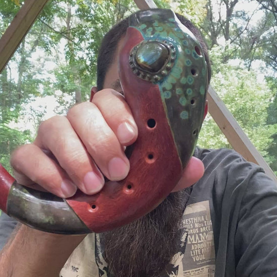 The Extended Range Ocarina is a two chamber instrument with a labradorite inlay and stunning finish. Each chamber is tuned an octave apart in Pentatonic Minor, producing rich and harmonious tones. Experience the soothing sounds of F (432Hz), perfect for meditation and relaxation.