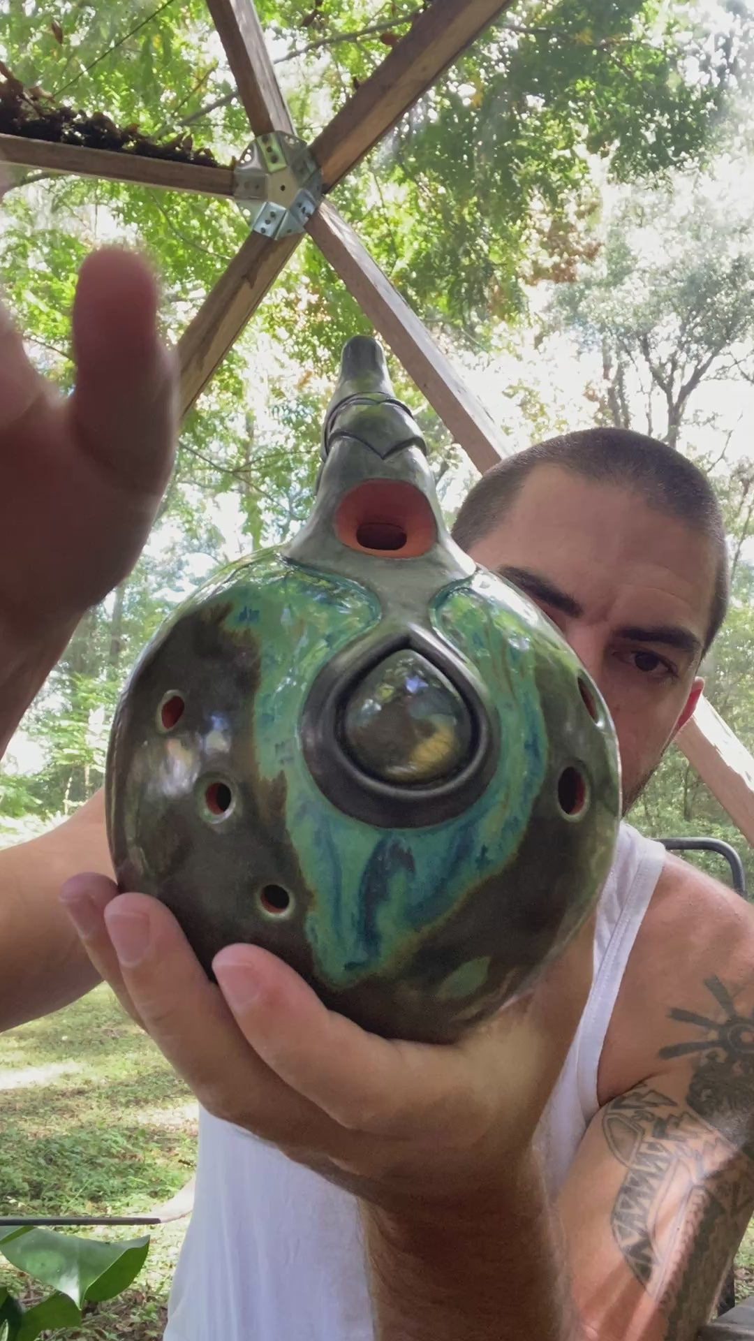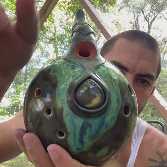 Crafted with expertise and precision, the Kettlebell Drone is a handmade clay drone flute featuring a stunning labradorite inlay. Its two chambers are tuned to the Pentatonic Minor Scale in B and offer a unique and melodious sound for a truly immersive musical experience. Elevate your performance with this one-of-a-kind instrument.