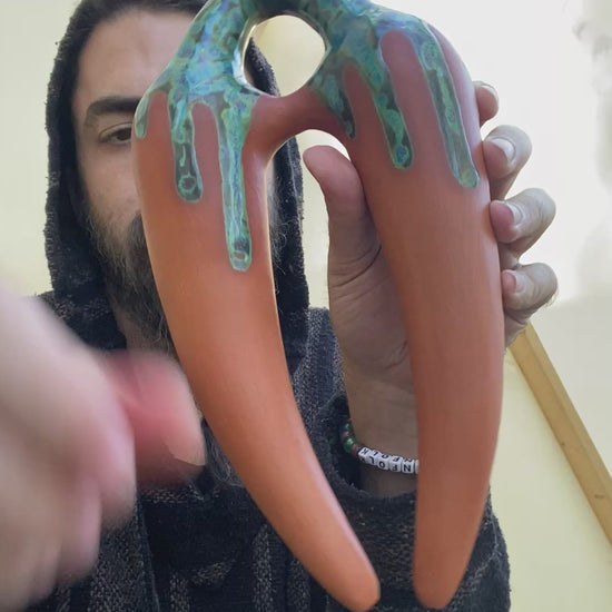 Expertly crafted from red earthenware clay, the Mandible Drone Flute is a pentatonic minor instrument in the key of D. Its unique shape and hand-sculpted design add to its one-of-a-kind sound. Perfect for musicians looking for a distinctive and professional quality drone flute.