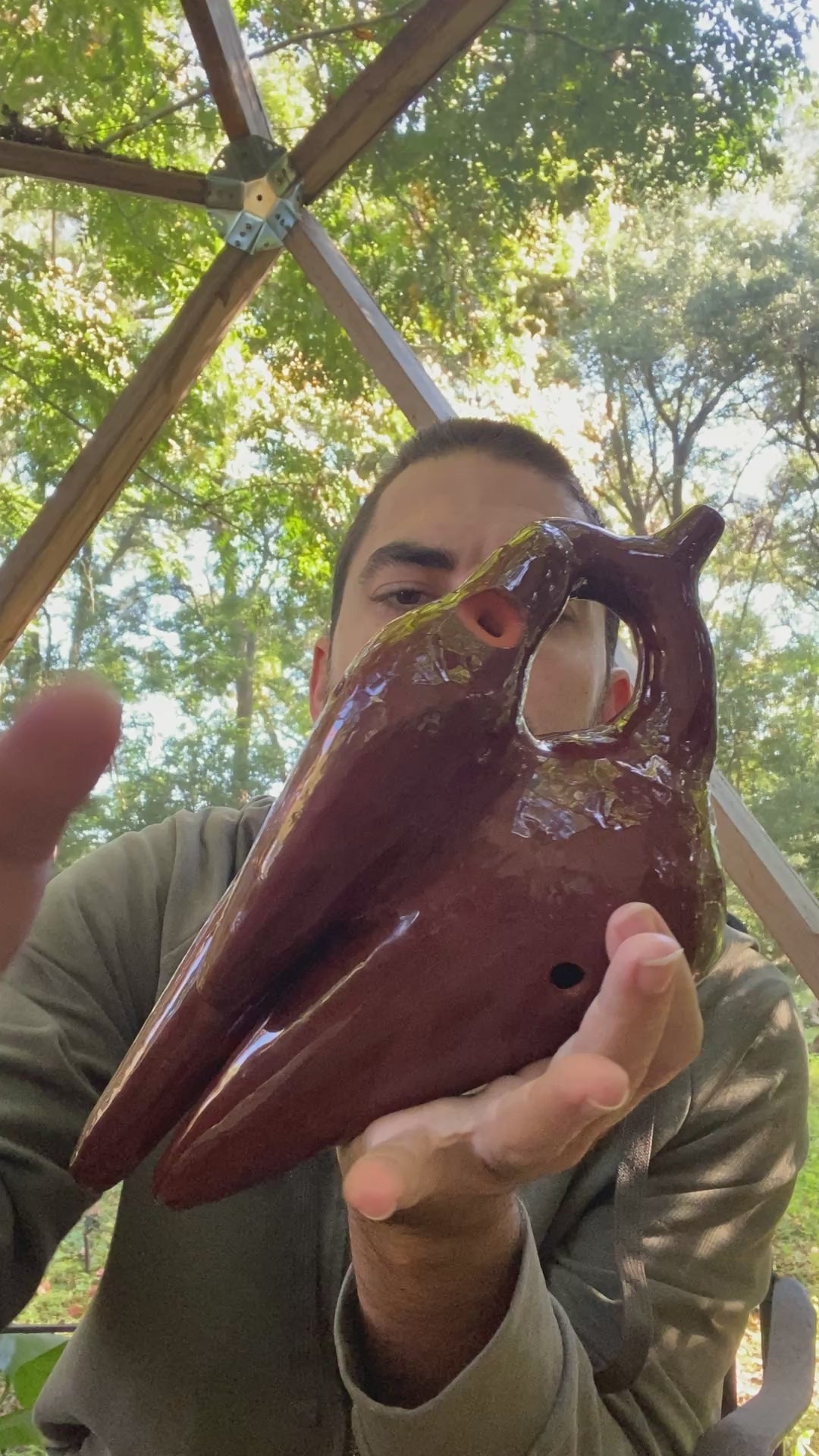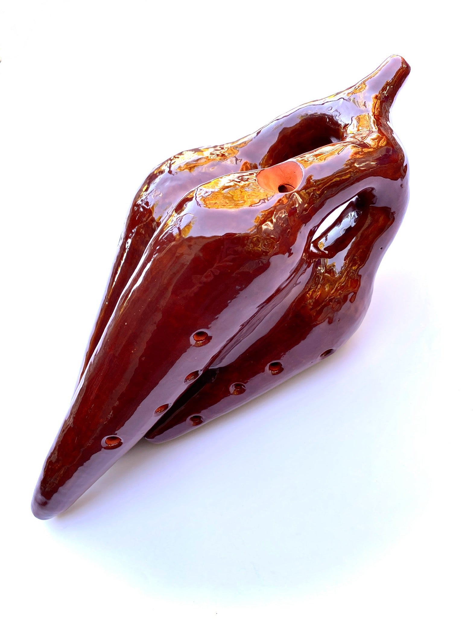 The Minor Huaca is a handcrafted, rare 3-chambered vessel flute made of terra cotta clay and precisely tuned to A, E, and A (432Hz). Its unique design and material provide a rich, earthy tone perfect for creating beautiful and meditative music. Bring the soothing sounds of the terra cotta flute into your home today.