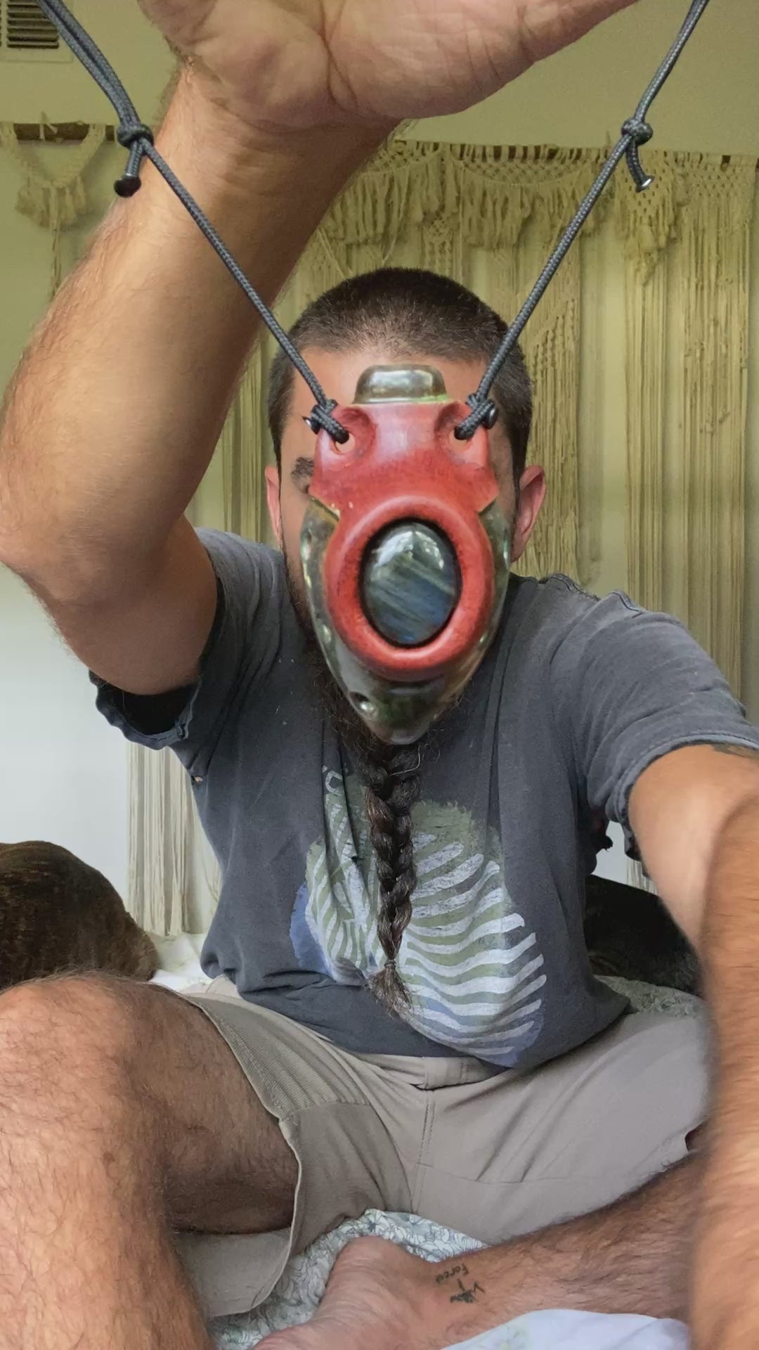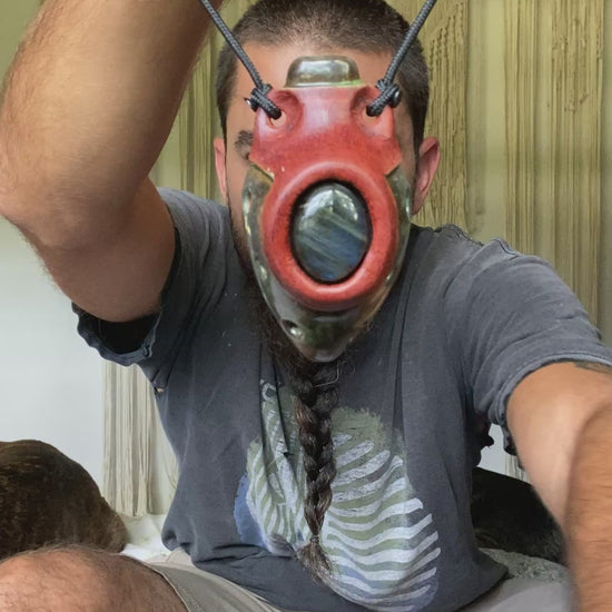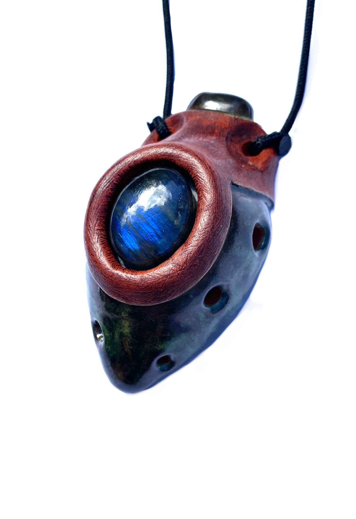 Experience the ancient sounds of Egypt with our handmade Ney Pendant. Crafted from red earthenware clay and adorned with a stunning labradorite stone, this ocarina is tuned to a modified version of the Egyptian Ney Scale in the key of Gb. Enjoy its unique melodies and add a touch of history to your music.