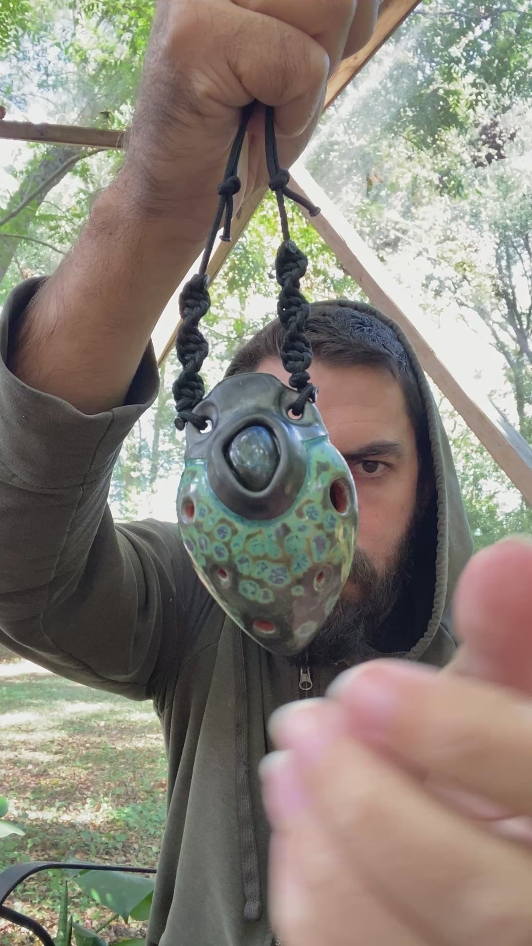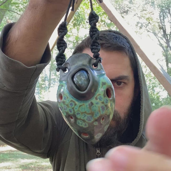 Expertly crafted and hand-tuned, the Ney Pendant creates a mid eastern feel in the key of D. Its unique design features a handmade clay vessel and intricate labradorite inlay. Elevate your musical repertoire with this one-of-a-kind pendant.