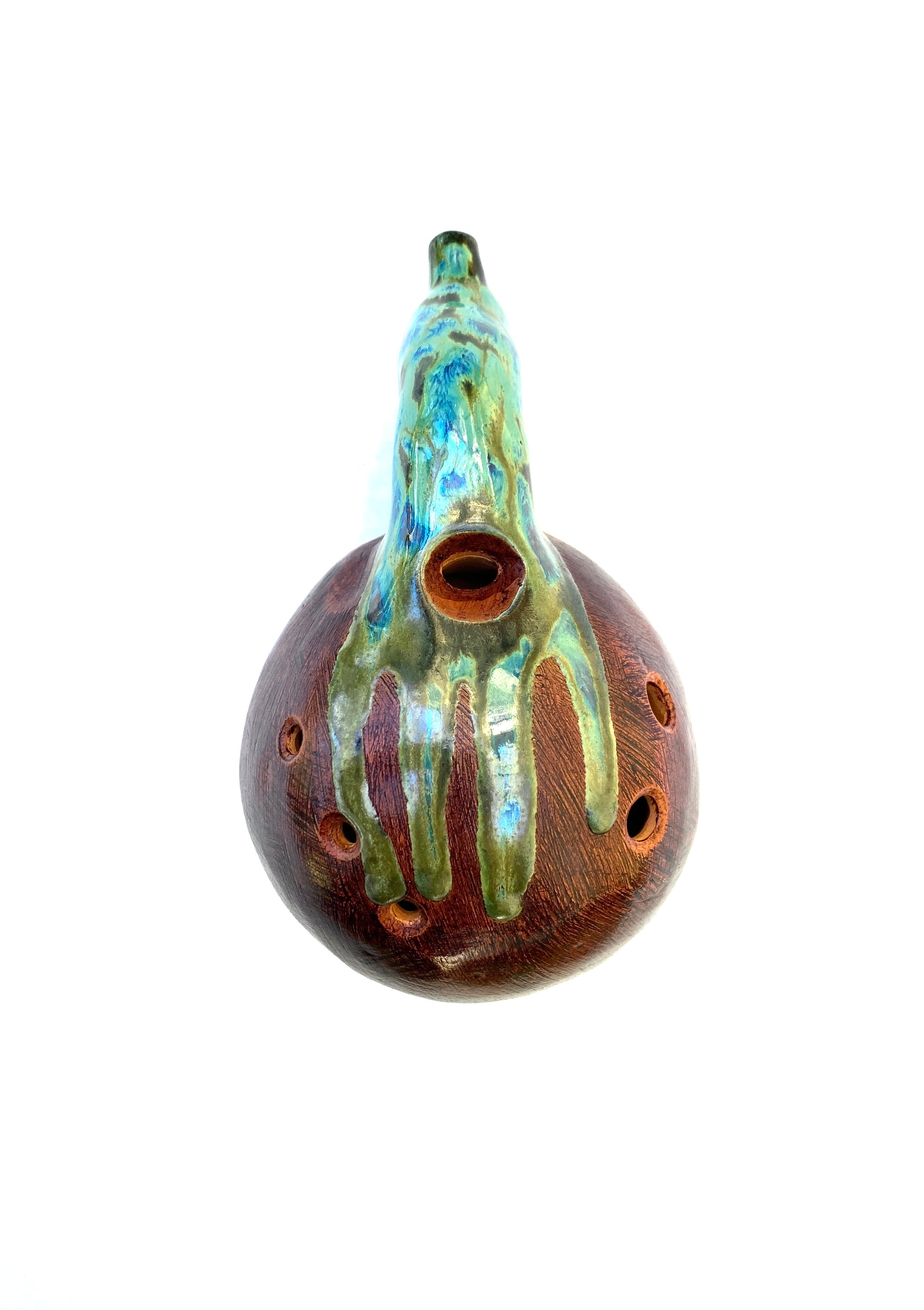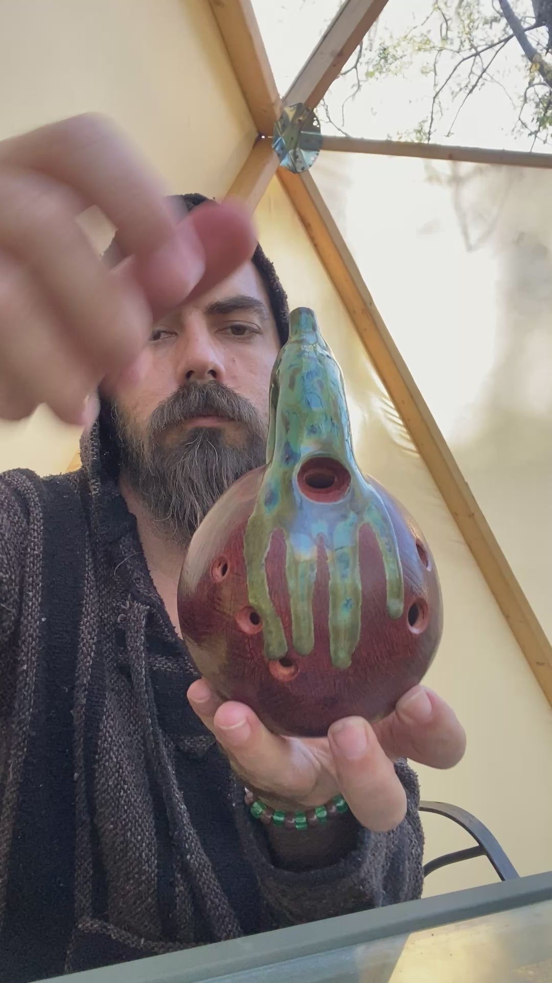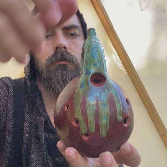 Expertly handcrafted from red earthenware clay, the Orb Drone F# is a unique wind instrument boasting a two chambered design. Tuned to Pentatonic Minor in the key of F#, it offers a melodic and soothing sound that is perfect for creating a calming atmosphere.