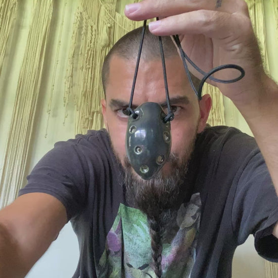 Expertly crafted from red earthenware clay, the Pentatonic Minor Pendant is a one-of-a-kind piece that combines the beauty of handmade art with the precision of music. Its precisely tuned pentatonic minor flute in the key of C creates a unique and melodic sound, making it a perfect accessory for any music lover.